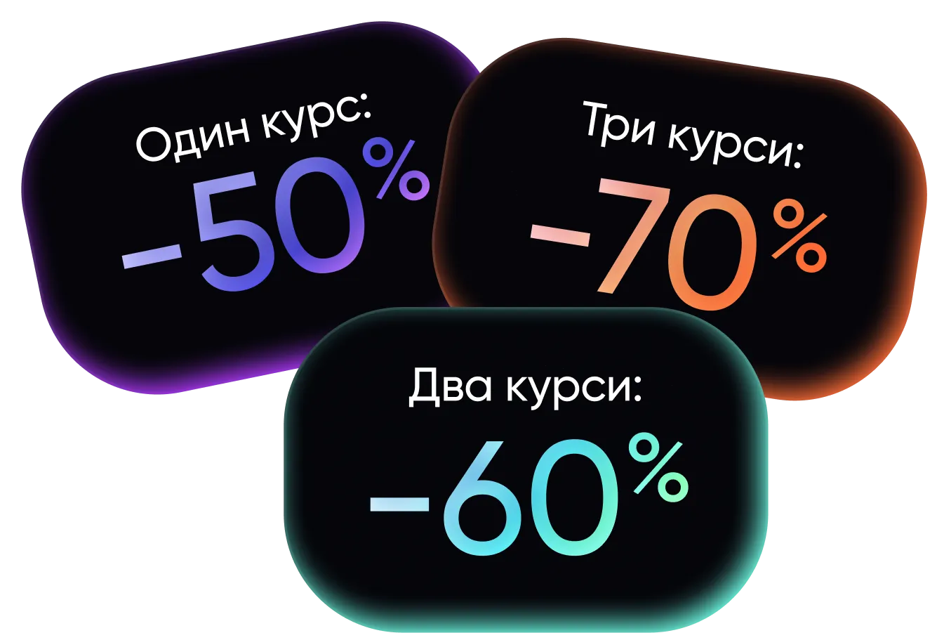 Чим більше курсів обираєш, тим більше зростає % твоєї знижки. Обирай пакет з 3 пропозицій і отримуй найвигідніші умови на навчання.